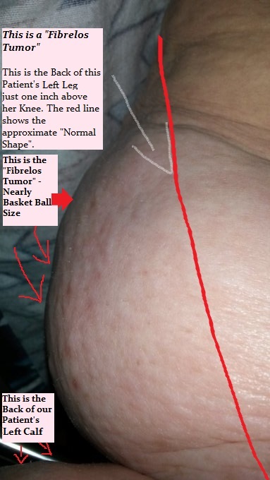 This Fibrelos Basketball Tumor is what our Founder asked the Vascular Surgeon to assist with. This was a Tumor that needed care. The location of this Fibrelos Basketball Tumor is approximately one inch above the back of the knee. Sitting was nearly impossible for a long time. And let's not discuss the extreme difficulty in using the toilet without falling off each time.